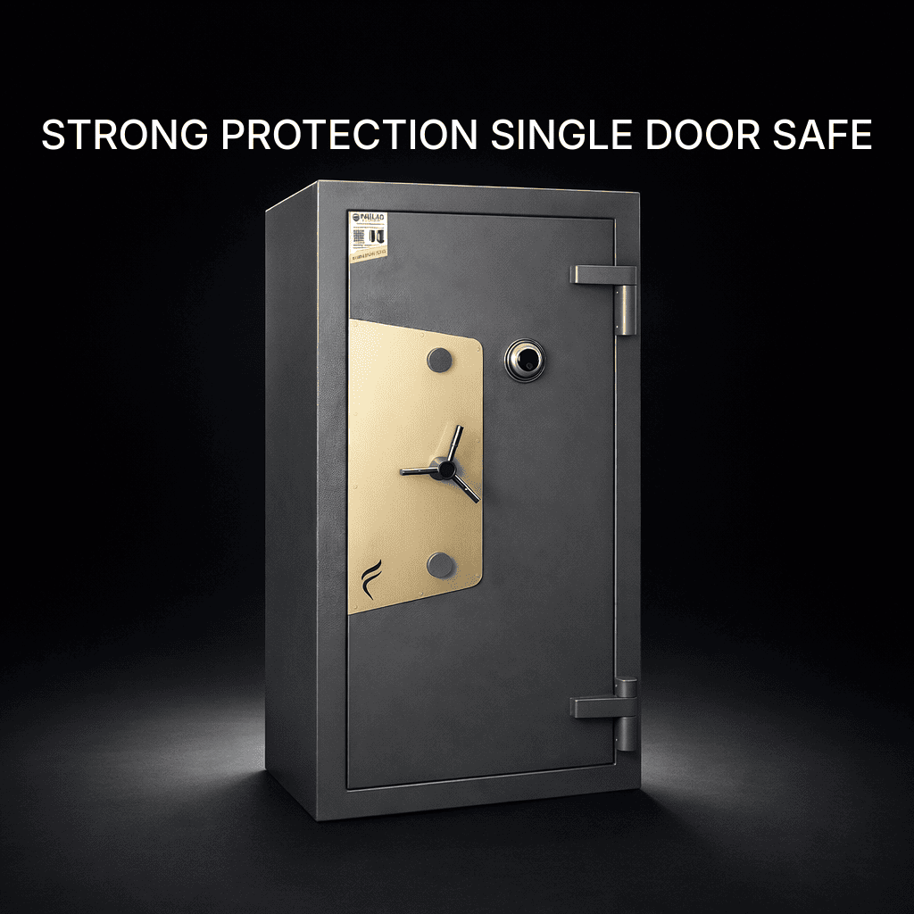 A fire-proof heavy-duty single door safe engineered for maximum protection against theft and fire. Built with industrial-grade materials, this safe provides superior strength, organized storage with shelves and drawers, and long-term reliability for commercial and residential use.